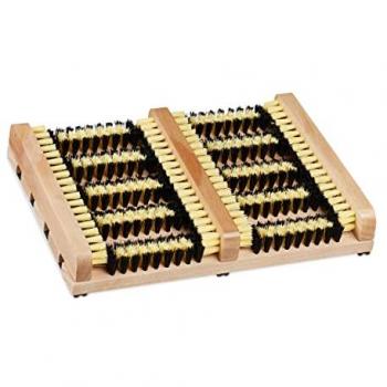 Relaxdays - 4x Pulisci Scarpe da Esterno, Fondo Antiscivolo, Spazzole Robuste, Zerbino per Entrata, Ingresso, Legno, naturale