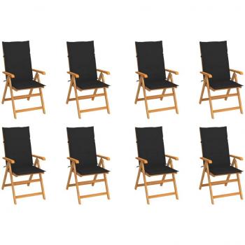 8 pcs Solid Teak Wood Reclining Garden Chairs with Cushions