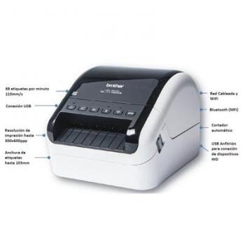 IMPRESORA DE ETIQUETAS BROTHER QL-1110NWB HASTA 103 MM CORTE AUTOMATICO IMPRESION B/N USB 2.0 WIFI BLUETOOTH