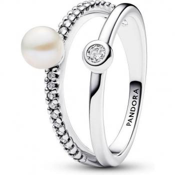 Anillo Perla Cultivada de Agua Dulce y Doble Banda en Pavé para Mujer