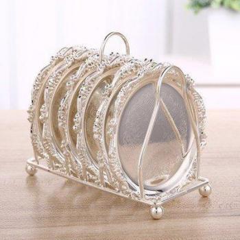 Gold-Plated Cocktail Coasters - 6pcs, Classic Vintage Zinc Alloy, Diameter 10.5 cm