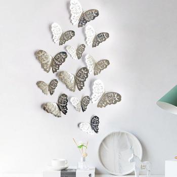 12 pcs Silver Butterfly Refrigerator Stickers - 3D Hollow Design