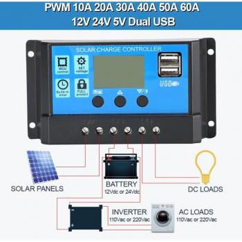12V 24V Solar Charge Controller 50A 40A 30A 20A with USB 5V and LCD