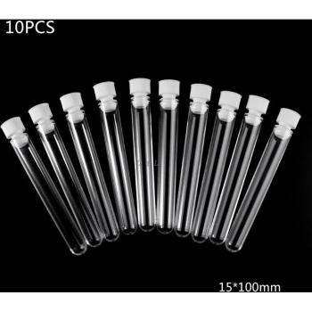 10pcs 16x100mm Clear Plastic Test Tubes With Caps Lab Round Bottle Tubes Laboratory Tools
