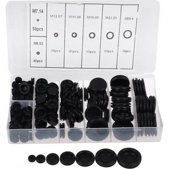 170pcs Black Rubber Grommet Hole Plug Set