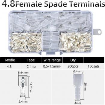200pcs Female Spade Connectors 2.8mm 4.8mm 6.3mm