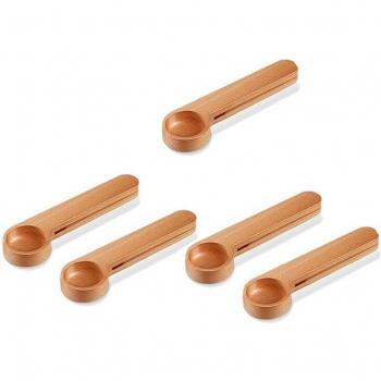 5 Piece Wooden Coffee Measure Spoon and Bag Sealer Combo