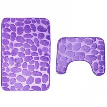 Cobblestone Design Non-Slip Toilet Rug Mat Set