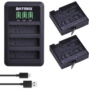 Mijia 4K Action Camera Battery Pack: 2 x 1450mAh Batteries + 3-Slot USB Charger