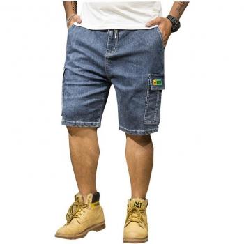 Plus Size 48 50 52 Men's Blue Denim Cargo Shorts