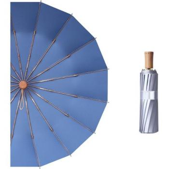 Compact 16-Rib Umbrella - Titanium Silver, Anti-UV, 3-Fold for Sun and Rain