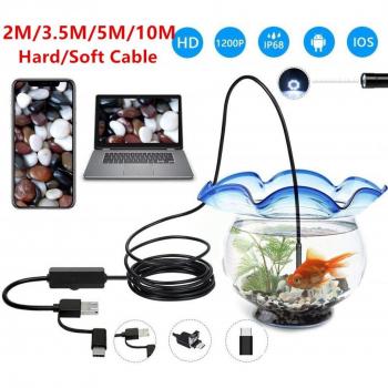 3 In 1 USB Waterproof Endoscope Camera 1200P, Hard/Soft Cable Borescope for Android Type-C and PC, Available in 2/3.5/5/10M
