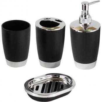 4-Piece Plastic Bathroom Set - Shampoo Dispenser, Gargle Cup, Toothbrush Holder, Soap Container