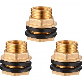 3 Count Brass Bulkhead Adapters, 1/2" Female x 3/4" Male Threaded for Pools and Tanks