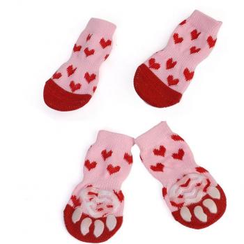 4Pcs Pet Dog Socks Antiskid for Dog Socks Teddy Love Pet Knits Socks Anti Slip Skid Bottom Home Shoes for Cats Socs Cat Perros