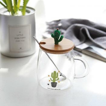 500ML Cactus High Borosilicate Glass Mugs Breakfast Milk Mug Coffee Mug Tea Cups with Lid And Spoon Best for Love