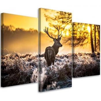 Three piece picture canvas print Forest Deer Animals Nature 60x40 brown