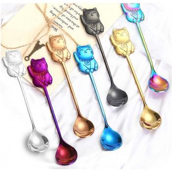 Lucky Cat 304 Stainless Steel Spoon Set - 7pcs for Coffee, Tea, Ice Cream, and Dessert