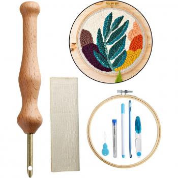 Wooden Handle Punch Needle Kit - 7 Tools Included