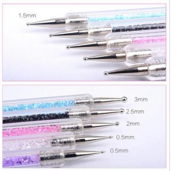 5pcs Acrylic Dual-Ended Dotting Pens for Nail Art with Colorful Rhinestone Design