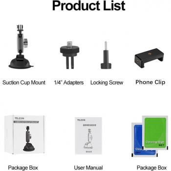 TELESIN 360° Adjustable Car Suction Cup Mount for GoPro and Action Cameras