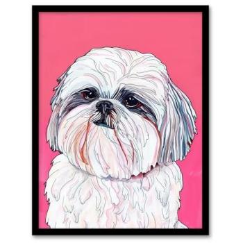 Charming Shih Tzu Pet Painting – 12" Wide x 16" Tall, Pink Accent Frame