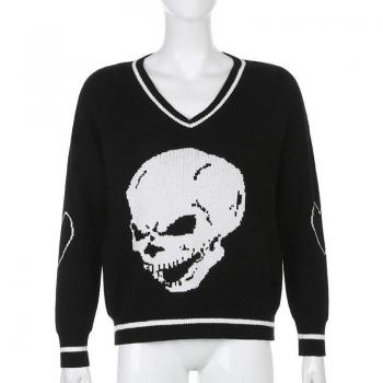 ALLNeon Y2K Punk Style Skull Knit Sweater