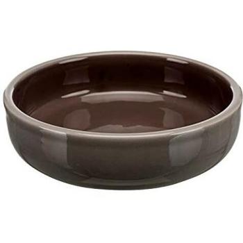 Taupe Brown Shallow Ceramic Cat Bowl - 15cm