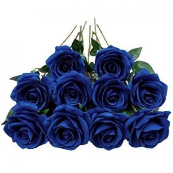 DuHouse Artificial Roses Fake Silk Flowers Bridal Bouquets Royal Blue