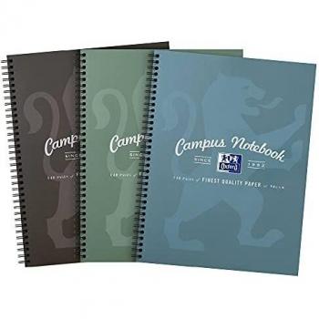 Oxford Campus Pack of 3 A4 Wirebound Notebooks in Assorted Colours