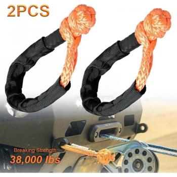 2pcs Orange 1/2" Soft Shackle Synthetic Rope 38000lbs Tow Strap for ATV UTV