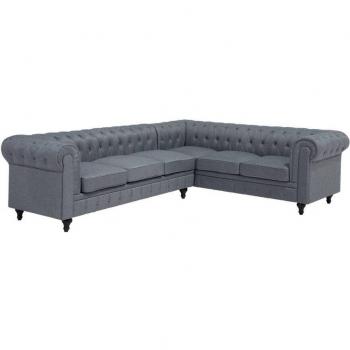 Chesterfield L-Shaped Left Hand Corner Sofa Beige Fabric