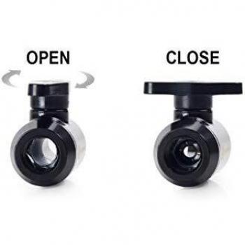 Twin nickel‑plated brass stopcocks with ¼‑inch internal threads feature matte black handles that slide smoothly, delivering reliable shut‑off for computer cooling loops or compact plumbing systems.