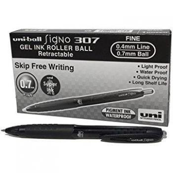 Uni-Ball Pen Umn-307 Signo Gel Retractable Rollerball Fine Black - Sold Each (12 per Box)