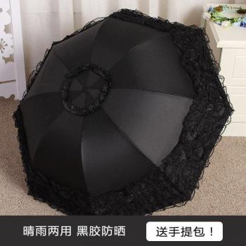 Black Plastic Three-fold Sun And Rain Dual-purpose Umbrella Sunshade Lace Umbrella Sun Protection And UV Protection Sun Umbrella