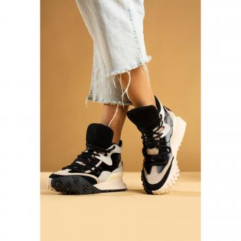 Fashionable Black & Beige High Sole Sports Boot (Women)