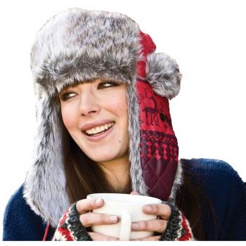 Uwear One‑Size Red Thermal Trapper Hat with Fur Trim for Women & Men