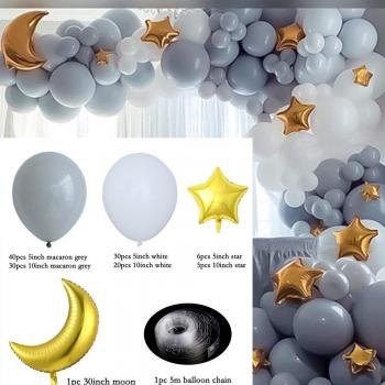 Pink Blue Balloon Garland with Star and Moon Foil Balloons