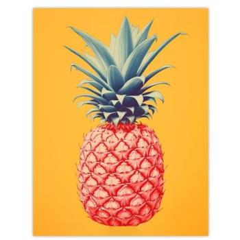 Artery8 Wall Art Print Pineapple Bold Vibrant Rich Red & Blue On Yellow Screen Risograph Artwork Spot Block Colour Retro Riso Kitchen Interior Design