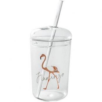 Flamingo Beer and Coffee Glass Mug with Straw 450ml