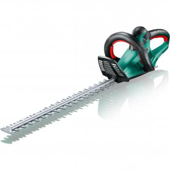 A lightweight cordless trimmer with an 8 cm dual‑blade system, powered by a 3.6 V lithium‑ion battery that offers up to 50 minutes of use and recharges in about three‑and‑a‑half hours. The ergonomic green/black handle features built‑in LED lights for clear visibility while trimming grass or hedges.
