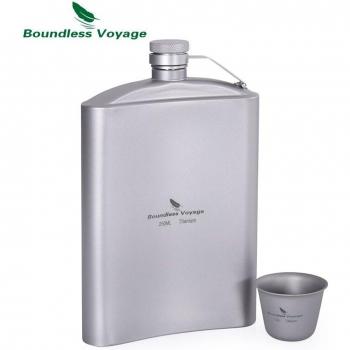 Boundless Voyage Outdoor Titanium Hip Flask Cup Set with Funnel Camping Picnic Pocket Whiskey Wine Mug Sake 8.5oz 250ml