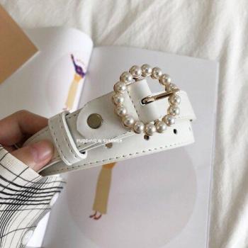 Classic Pearl Buckle Women's Leather Belt