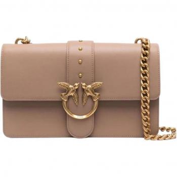 Brown calf leather shoulder bag with a soft quilted texture, an adjustable strap, a small zippered pocket and a sleek brass emblem; roomy interior with a subtle divider keeps your items tidy on the go.