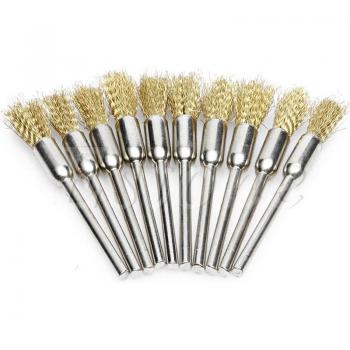 10-Piece Mini Wire Brush Set for Drill or Grinder (Brass, 3mm x 5mm)