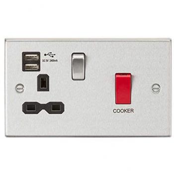 45A dp Switch & 13A Switched Socket with Dual USB Charger 2.4A - Brushed Chrome with Black Insert - Knightsbridge