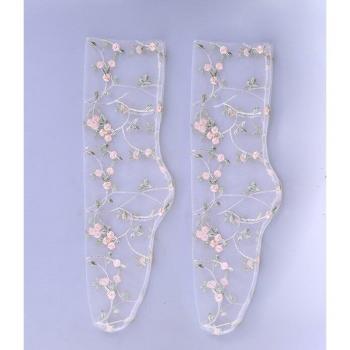 Transparent Floral Embroidery Socks