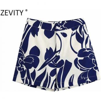 Zevity Blue Flower Print Bermuda Shorts for Women P886