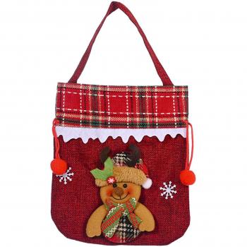 Christmas Themed Linen Candy Bags - Drawstring Snowman, Deer, Santa, Bear