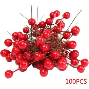 100Pcs Artificial Berry Vivid Red Holly Berry Berries Home Garland Christmas Dec Beautiful